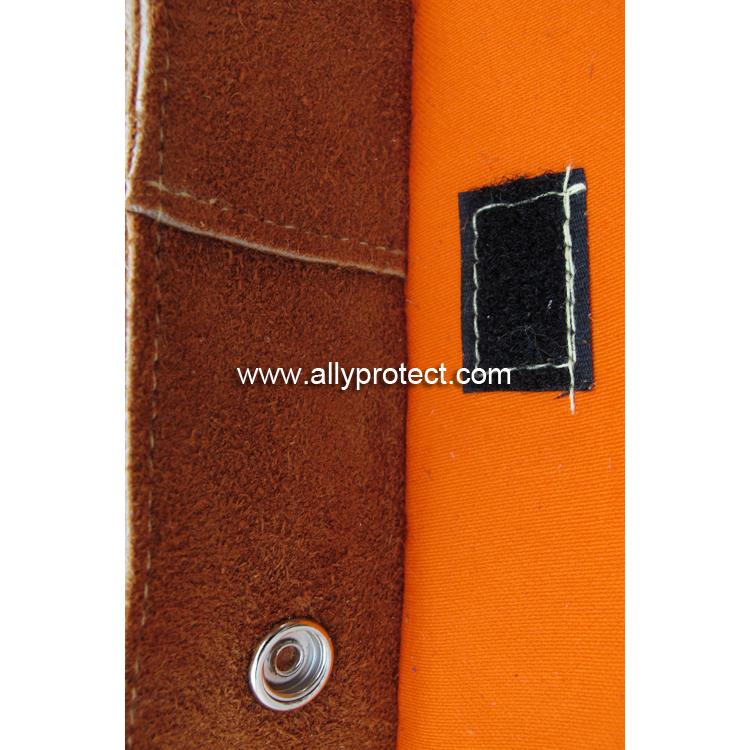- 產品描述: [ AP ]前幅和衣袖采用咖啡色牛二層皮,后幅采用橙紅色防護阻燃布,專為焊工在炎熱環境下工作而設計。